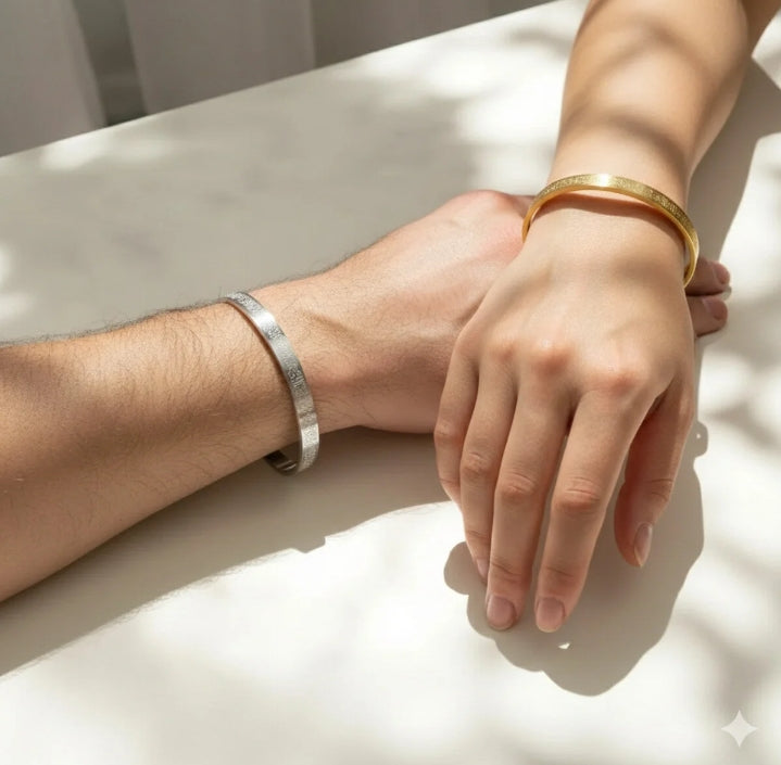 Ramazan ayına özel ayet'el kürsi bileklik gümüş ve altın renkli paslanmaz çelik bileklik